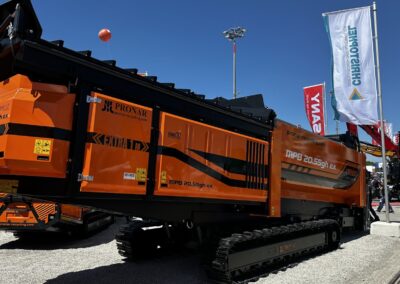 Das Trommelsieb auf Kette, hydraulisch in der Neigung verstellbar – der Inbegriff für exakte Trennschnitte siebschwieriger Stoffe. In der Ex-Version sogar mit verlängertem Aufgabetrichter für das “Mehr” an Ladebreite und Trichtervolumen. Mutterboden, Aushubmaterialien, Kompost, Holz und vieles mehr wird in dem rotierenden Zylinder gleichermaßen gedreht, gewendet, gesiebt und gefördert, bis das Überkorn sauber und gereinigt auf Halde abtransportiert ist.